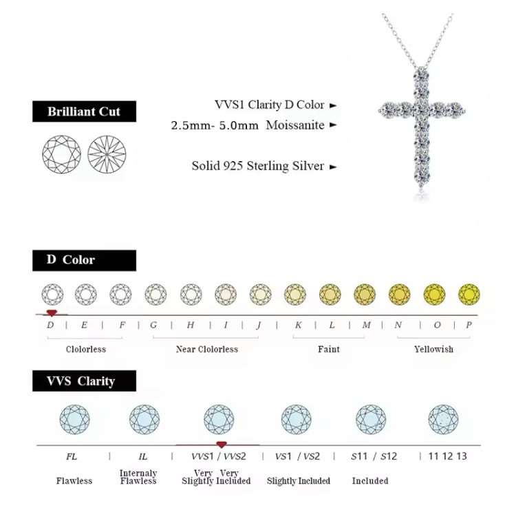 全ての商品には、品質を保証する証明書が付属しています。安心してご使用いただける高品質なモアサナイトのクロスネックレスを、ぜひご堪能ください!